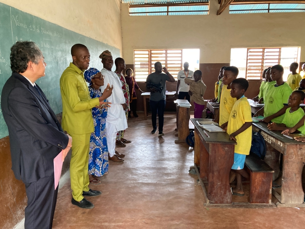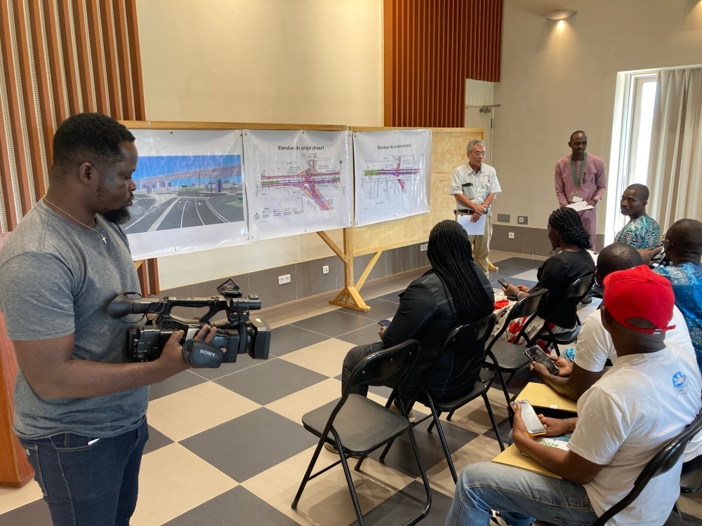 プレス一行は、セメポジ市及びアジャラ市を訪れ、令和元年度草の根・人間の安全保障無償資金協力「オクン・セメ中学校校舎建設計画」及び平成27年度草の根文化無償資金協力「国立青年体育学院柔道場建設計画」の視察を行った後、一般無償資金協力「コトヌ市ベドコ交差点立体交差建設計画」関係者による事業概要説明を受けました。